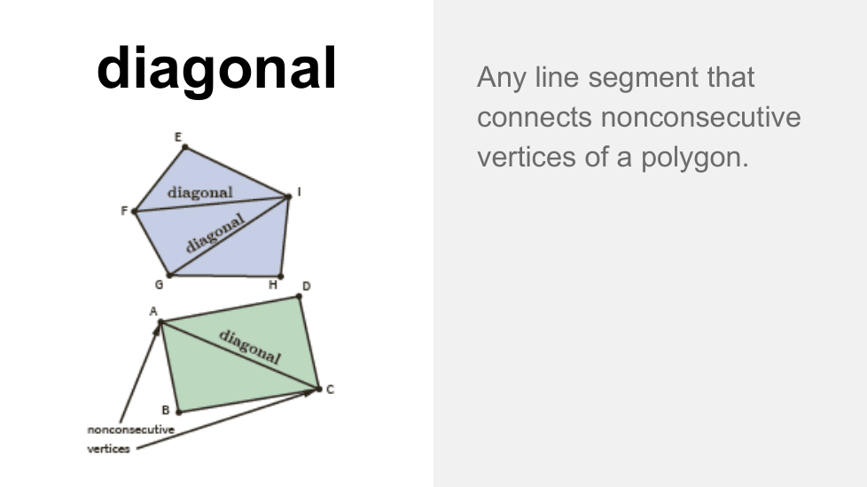 Cualquier segmento de línea que conecta vértices no consecutivos de un polígono.