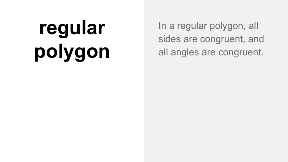 En un polígono regular, todos los lados son congruentes y todos los ángulos son congruentes.