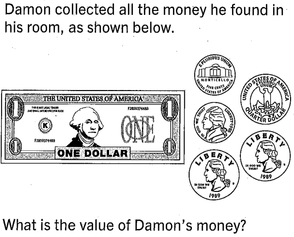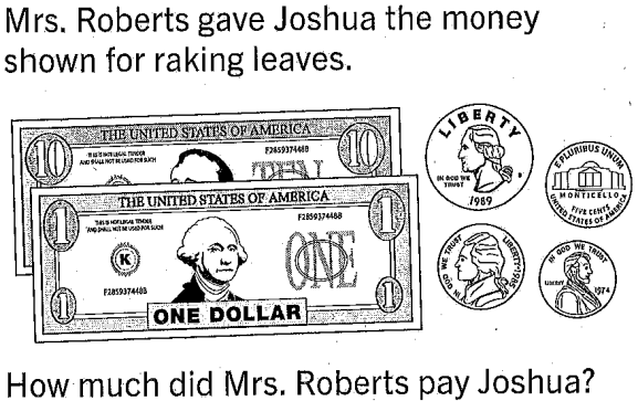 Write the value of each collection of bills and coins.