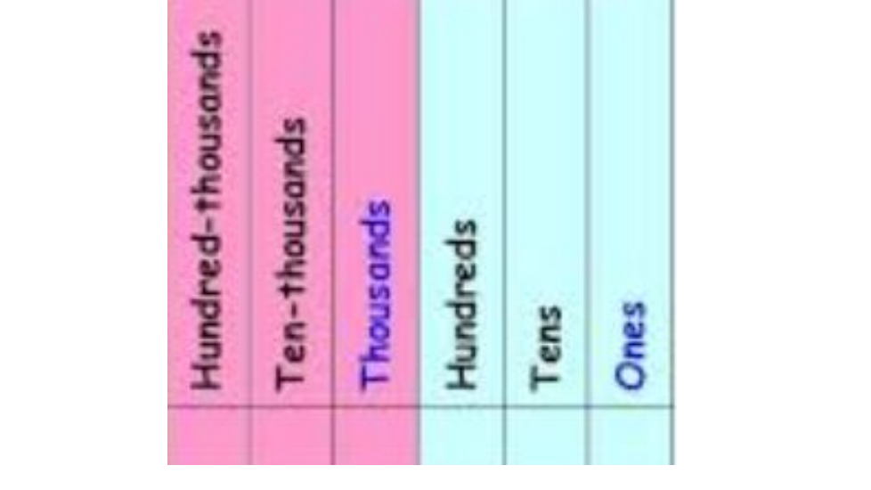 Create a place value chart in your notebook , paper or whiteboard: HTh TTh Th, H T O