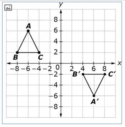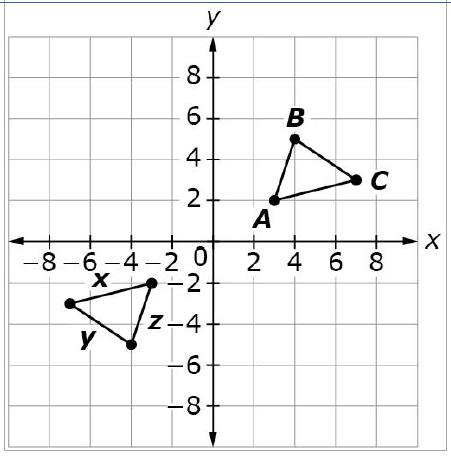 Reflect Triangle ABC across the x axis to form Triangle A'B'C'.