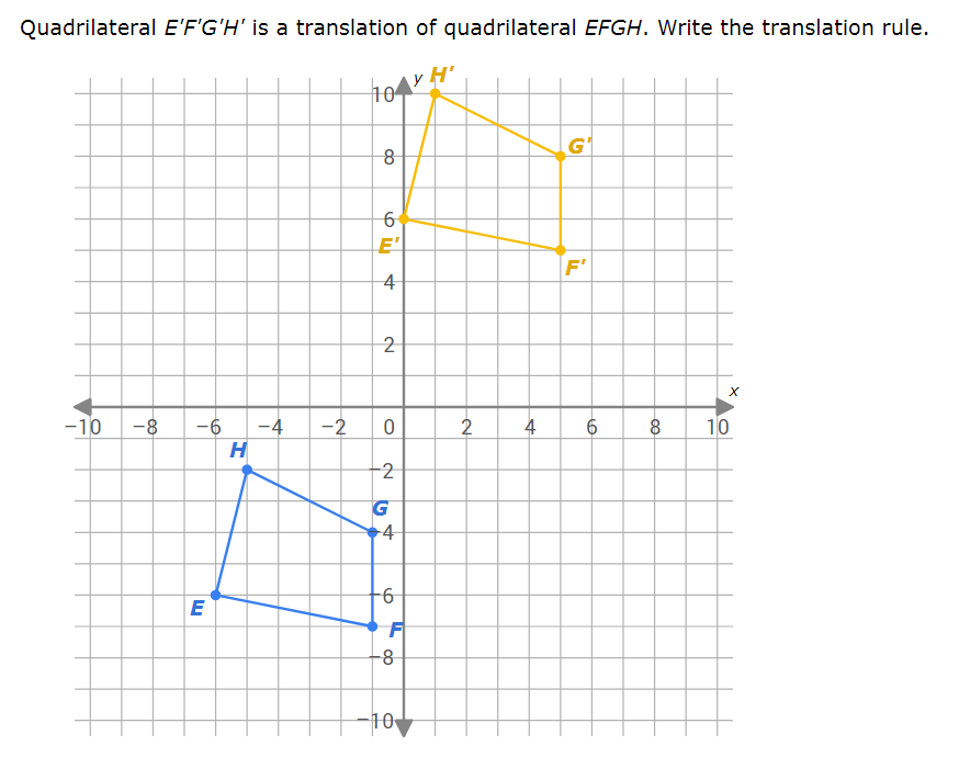 Describe a sequence of transformations to create the image of quadrilateral EFGH as E'F'G'H'