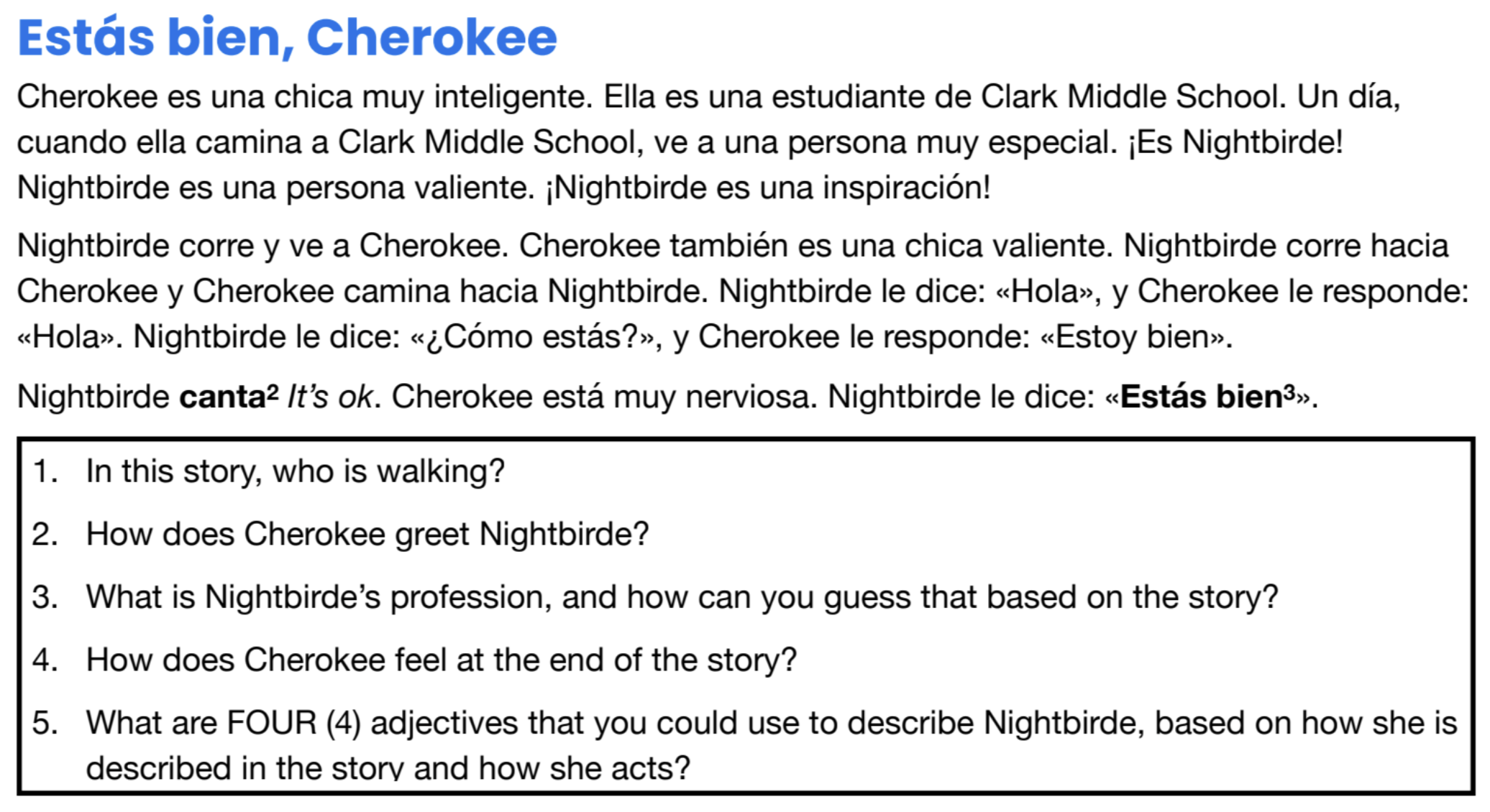 Reading - Estás bien, Cherokee