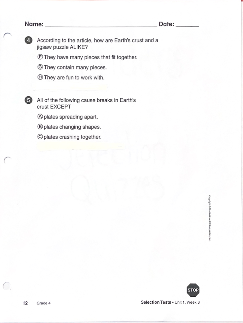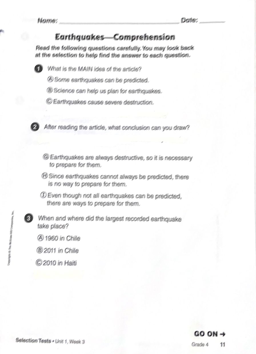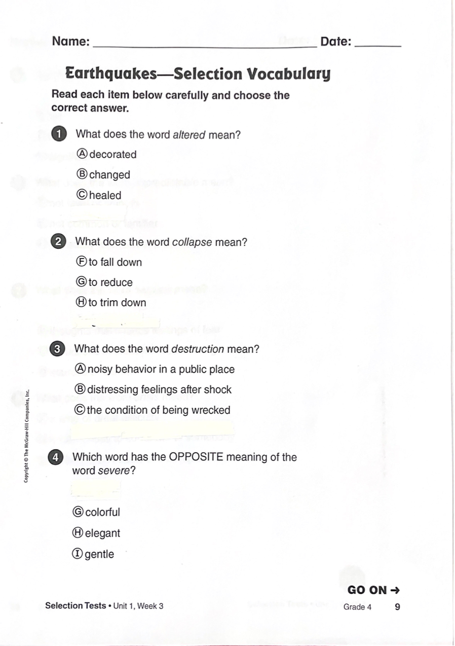 Modified Unit 1 Text Set 1 Selection Quiz