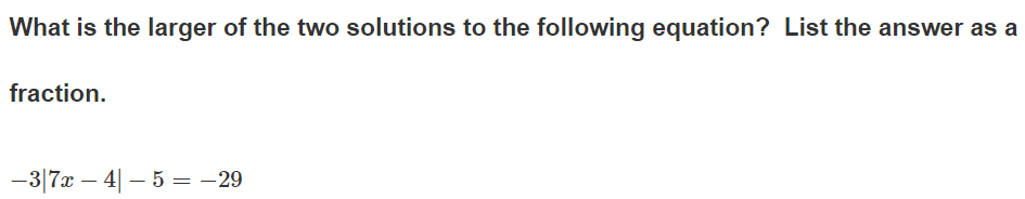 (find the 2 solutions...then input ONLY the larger of the 2 in the box)