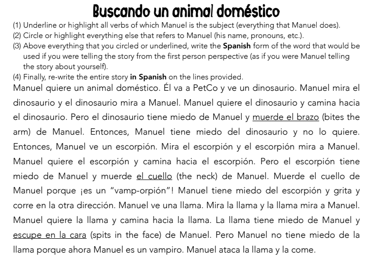 Re-write the entire story if you were telling the story from the first person perspective (as if you were Manuel telling the story about yourself).