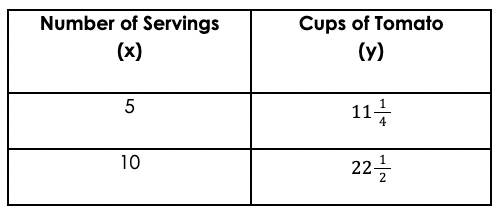 Yummy—At Mama Mancini’s Italian Restaurant, everyone orders the famous minestrone soup. Is there a proportional relationship the number of servings and the cups of tomato used? Explain.