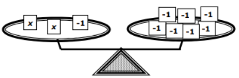 The model represents the equation: 2x - 1 = -7