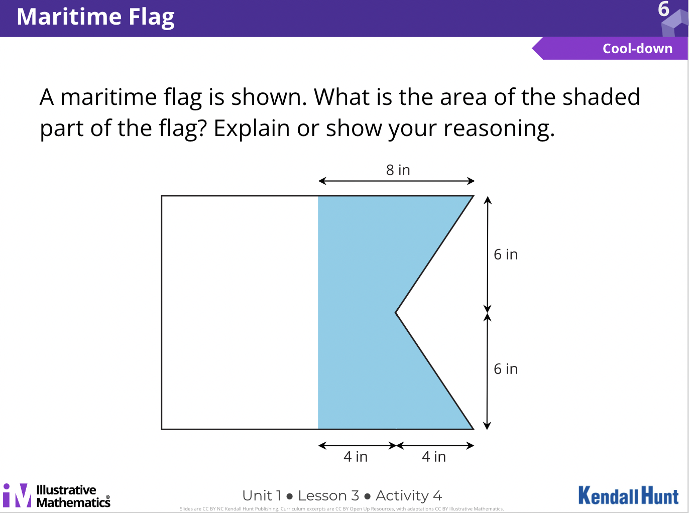 A maritime flag is shown. What is the area of the shaded part of the flag? Explain or show your reasoning.