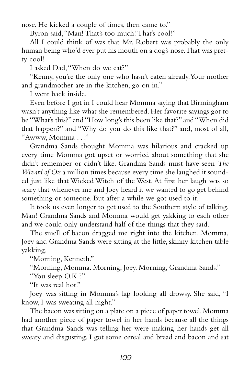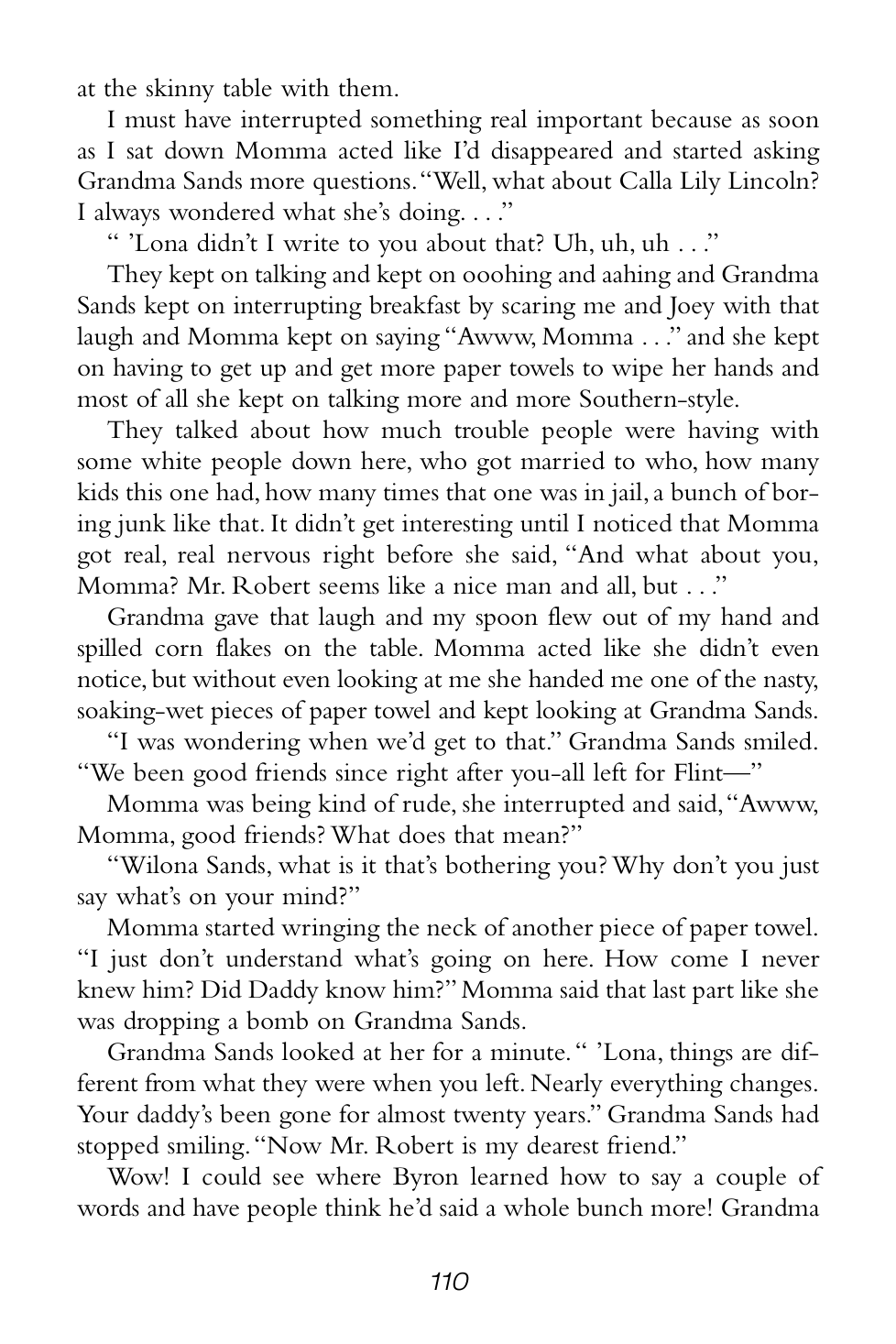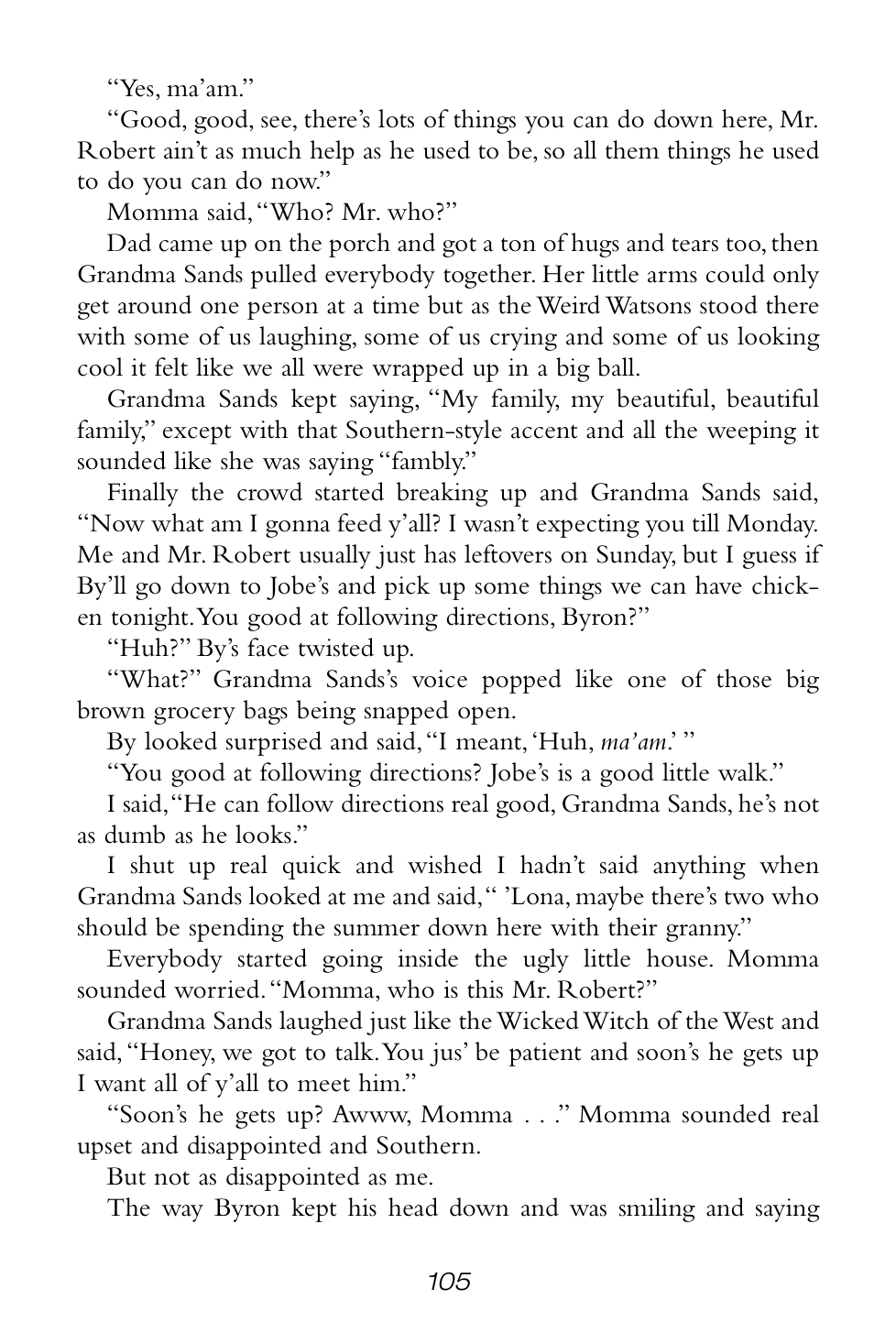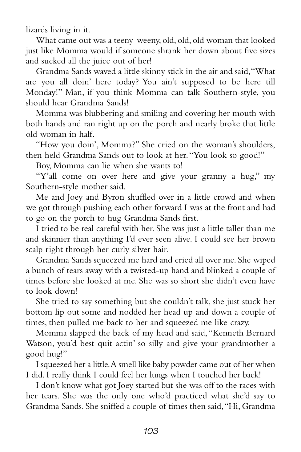 “Grandma Sands didn’t yell or scream or anything, but the way she said those couple of things made everybody who heard it shut their mouths and listen real hard.”