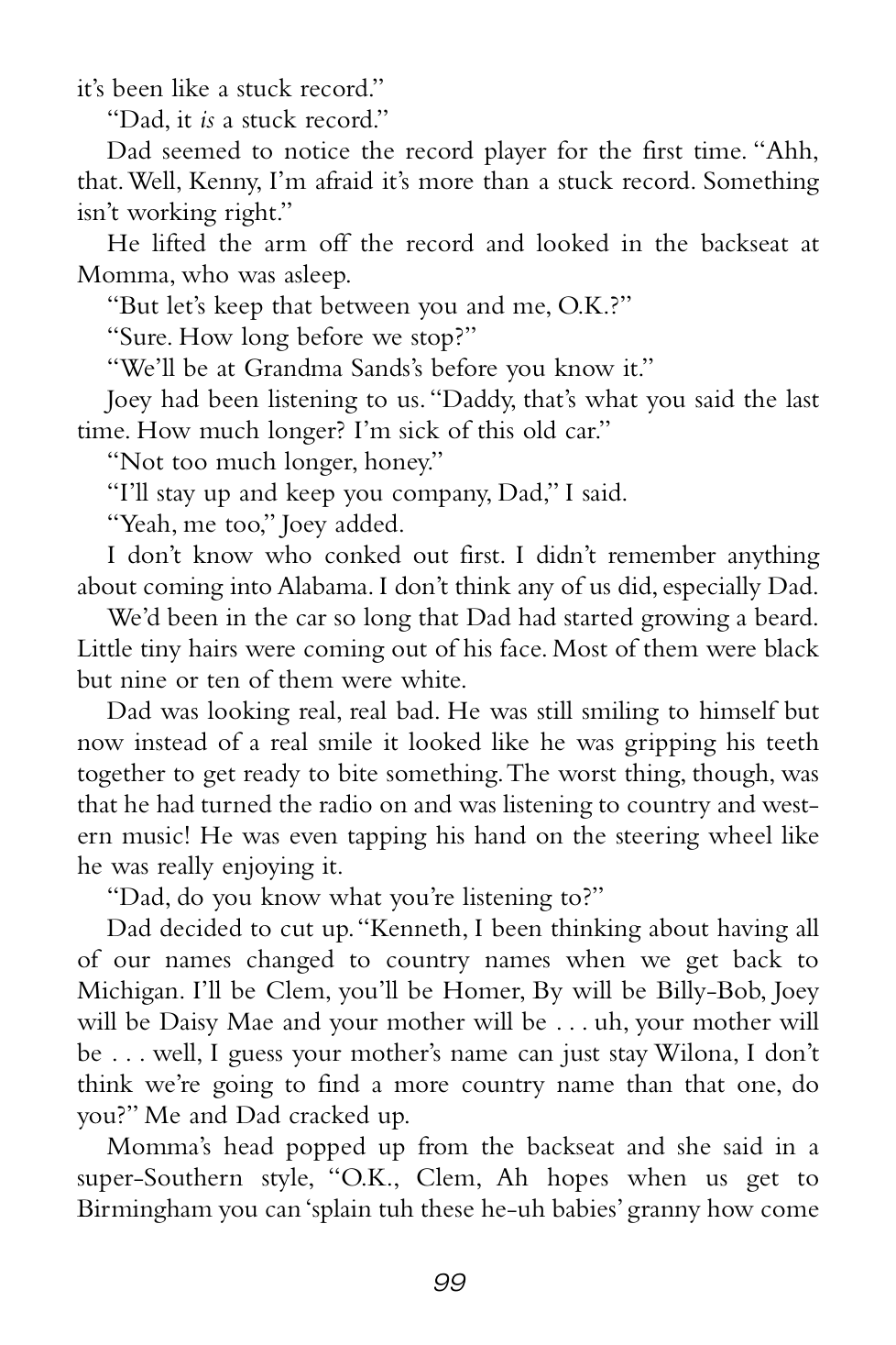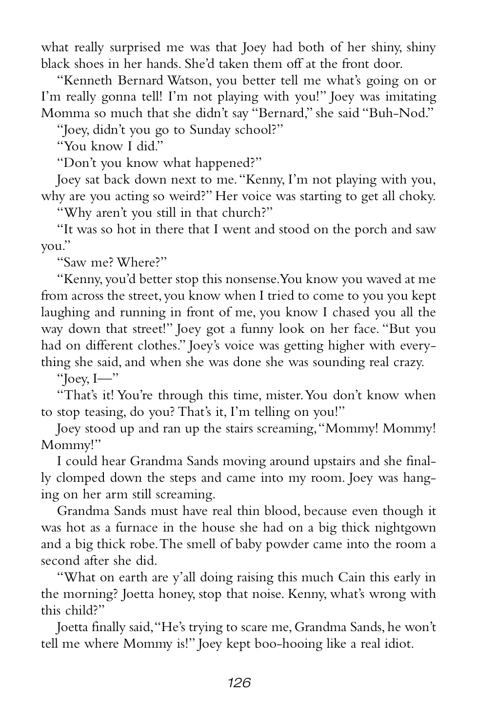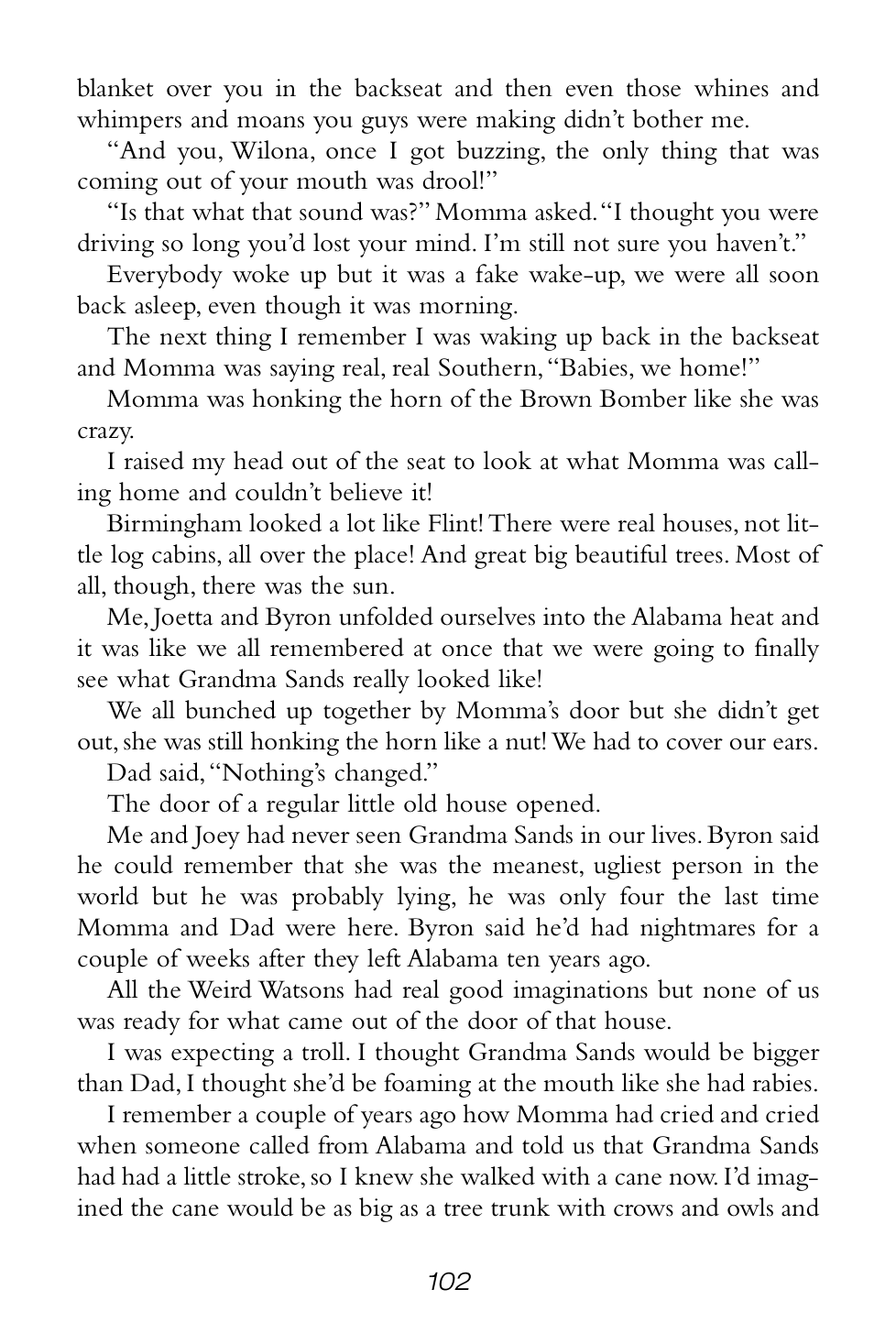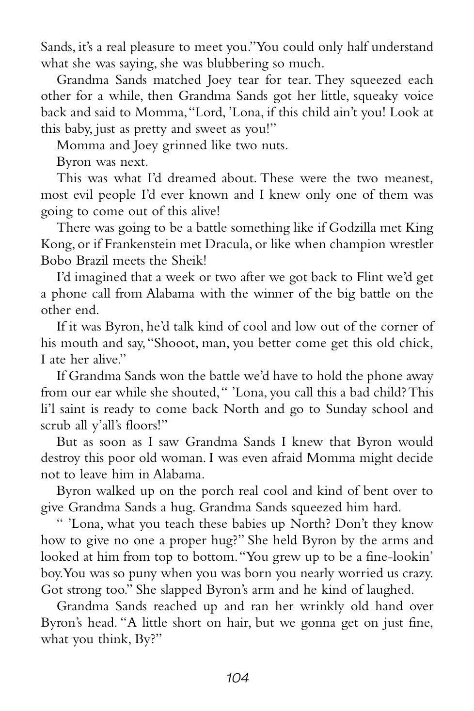 “Grandma Sands didn’t yell or scream or anything, but the way she said those couple of things made everybody who heard it shut their mouths and listen real hard.”