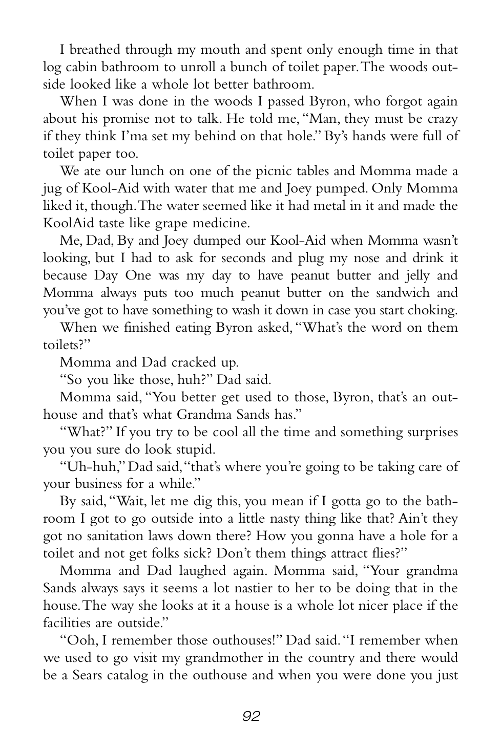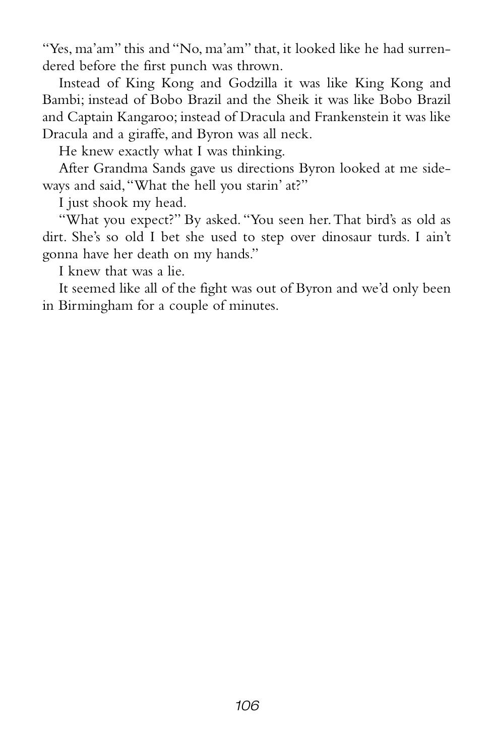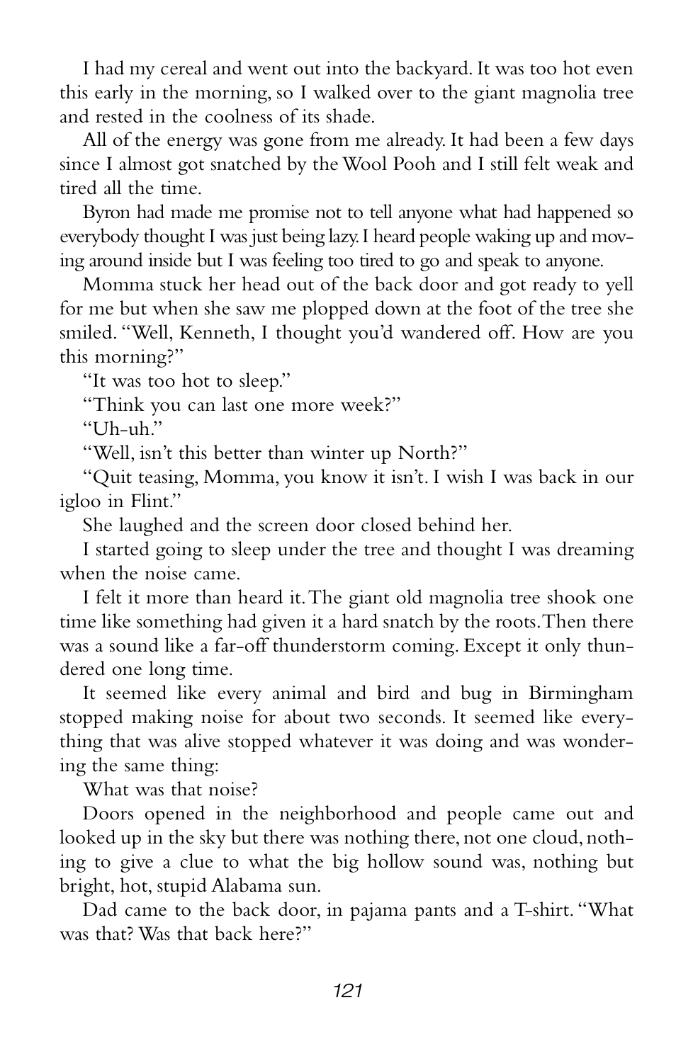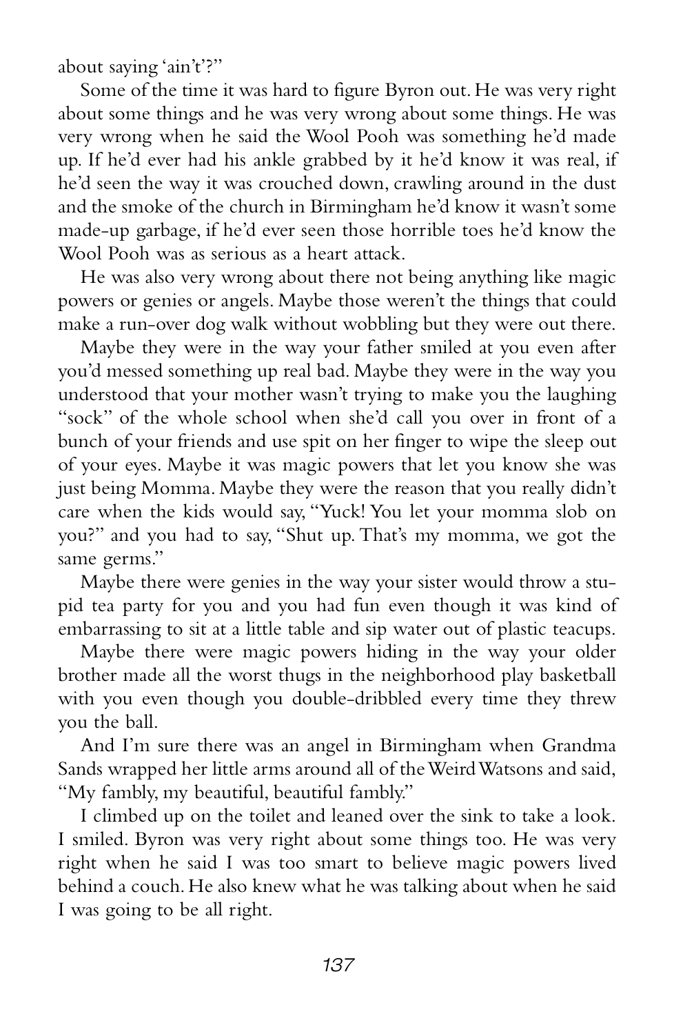 “Grandma Sands didn’t yell or scream or anything, but the way she said those couple of things made everybody who heard it shut their mouths and listen real hard.”