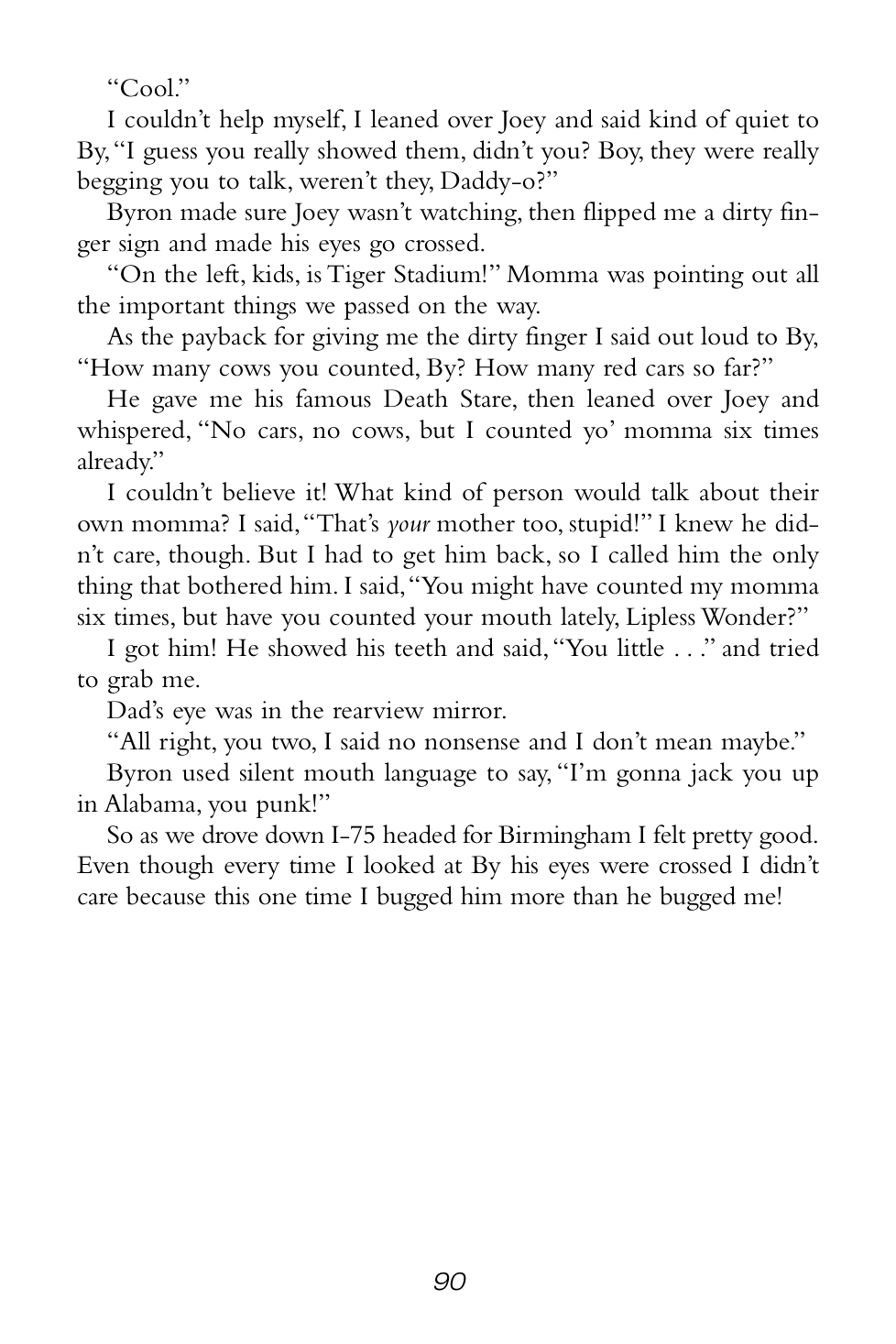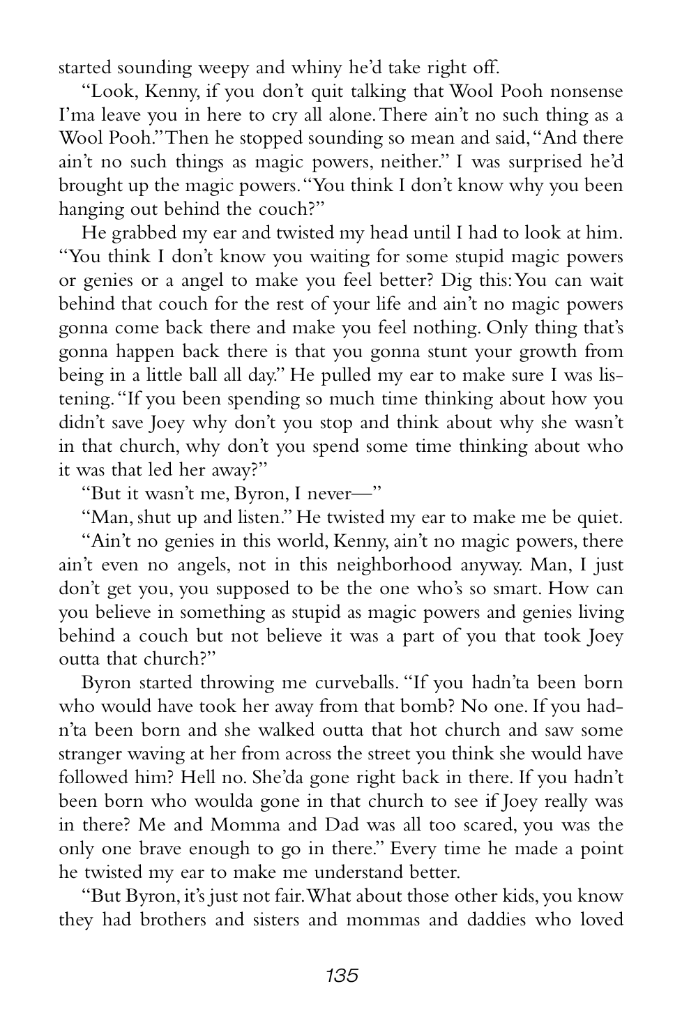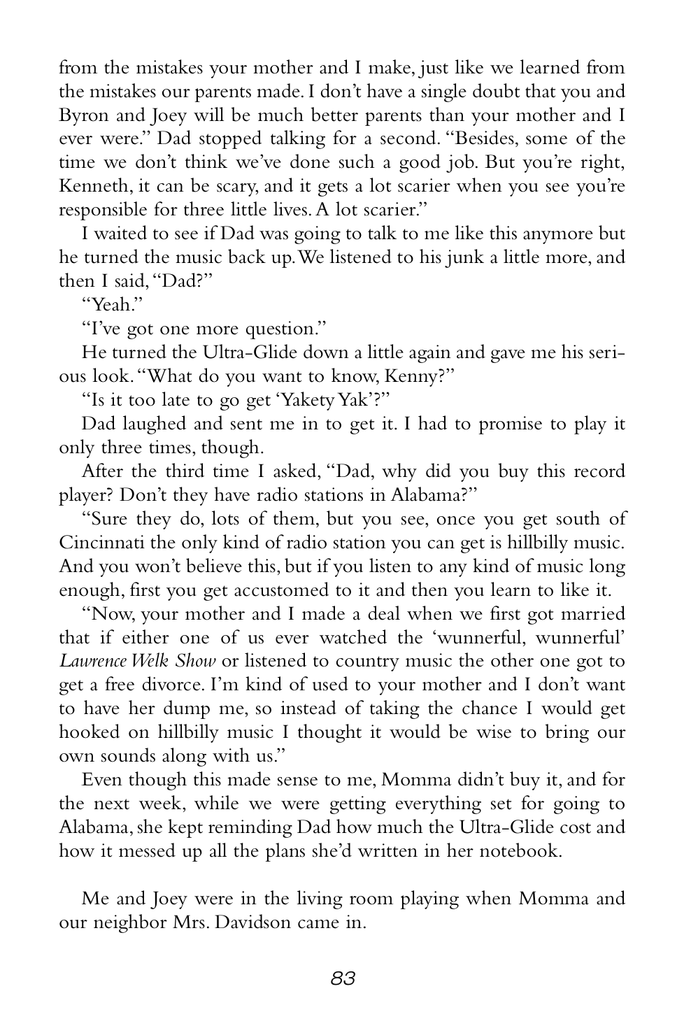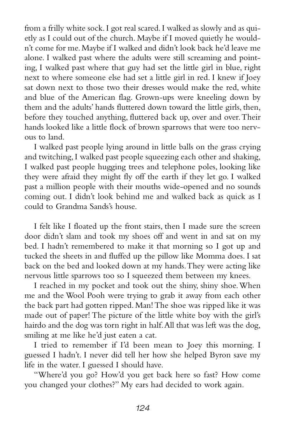“Grandma Sands didn’t yell or scream or anything, but the way she said those couple of things made everybody who heard it shut their mouths and listen real hard.”