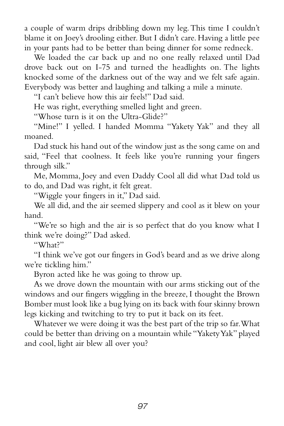 “Dad stuck his hand out of the window just as the song came on and said, ‘Feel that coolness. It feels like you’re running your fingers through silk.’ Me, Momma, Joey and even Daddy Cool all did what Dad told us to do, and Dad was right, it felt great.”