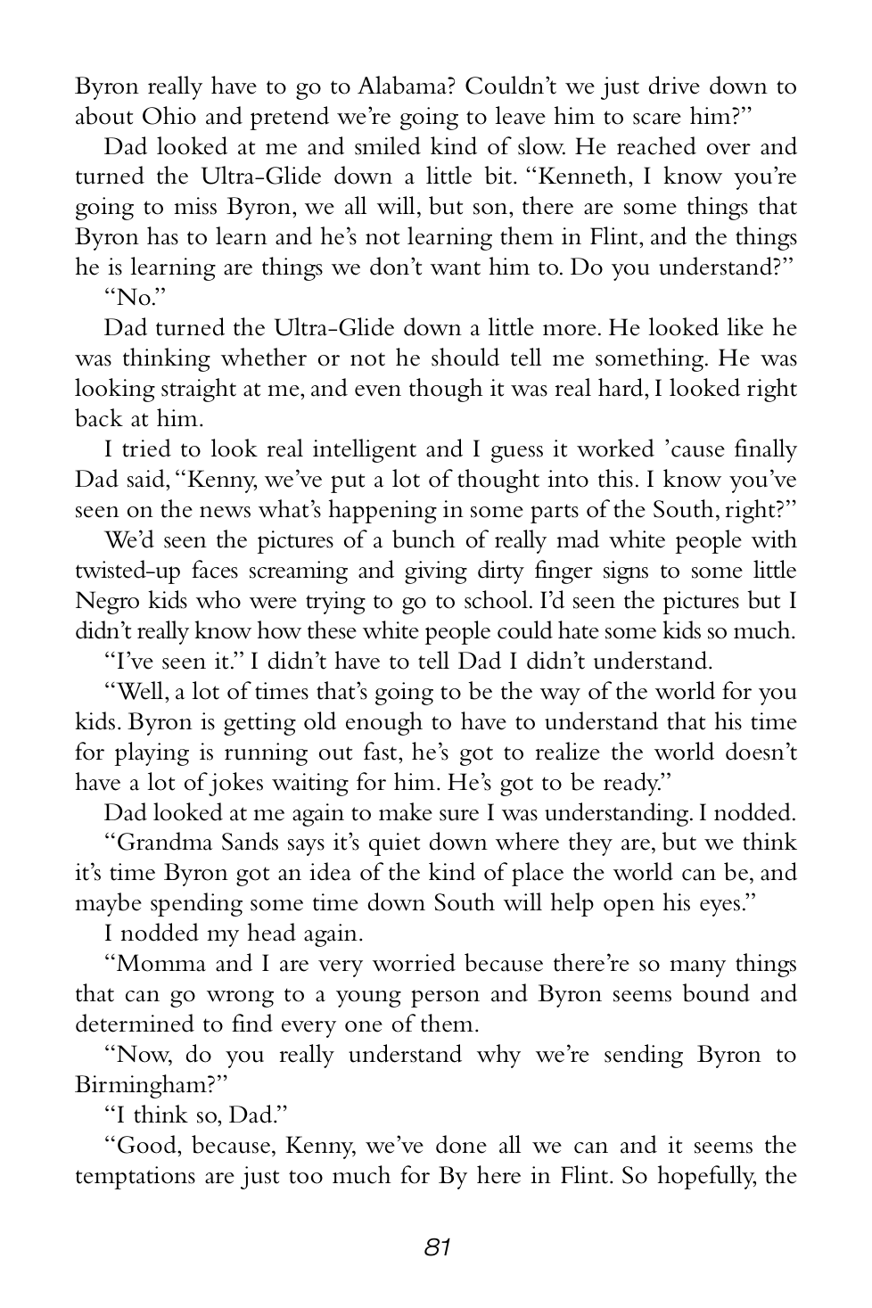 What has made Byron forget about his promise not to talk to Mom and Dad?