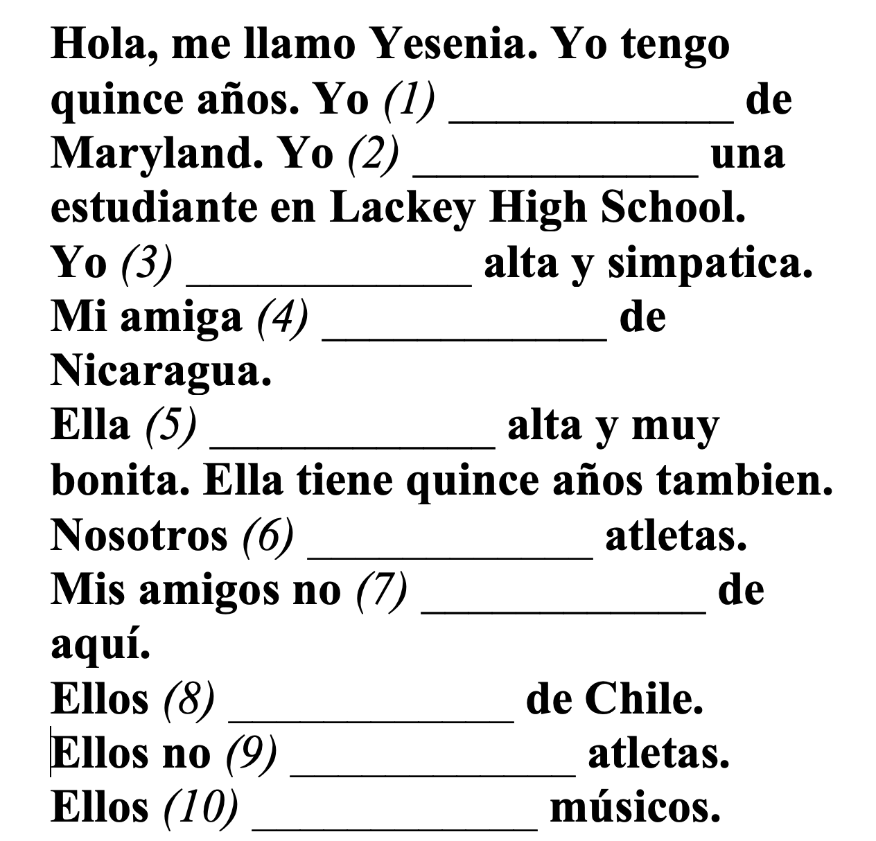 Choose the correct form of ser for each sentence.Los estudiantes _____________ de Los Estados Unidos.