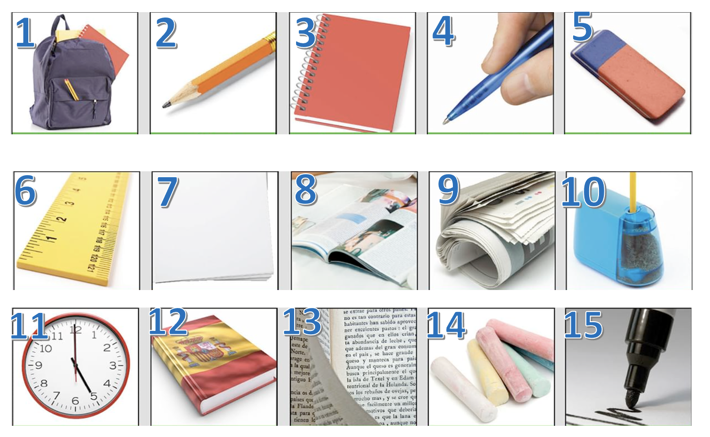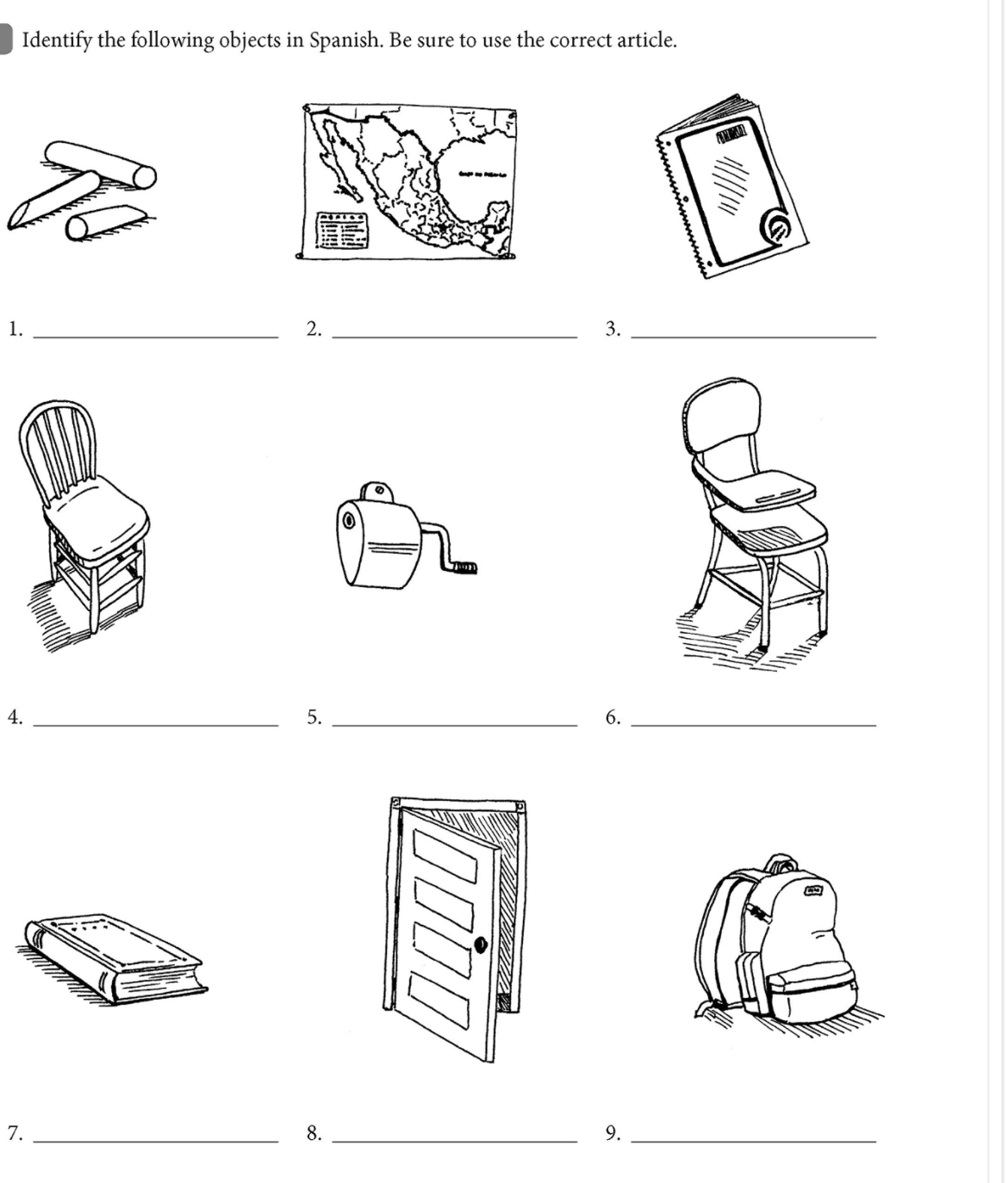 identify the following objects in Spanish. Be sure to use the correct definite article (el or la):