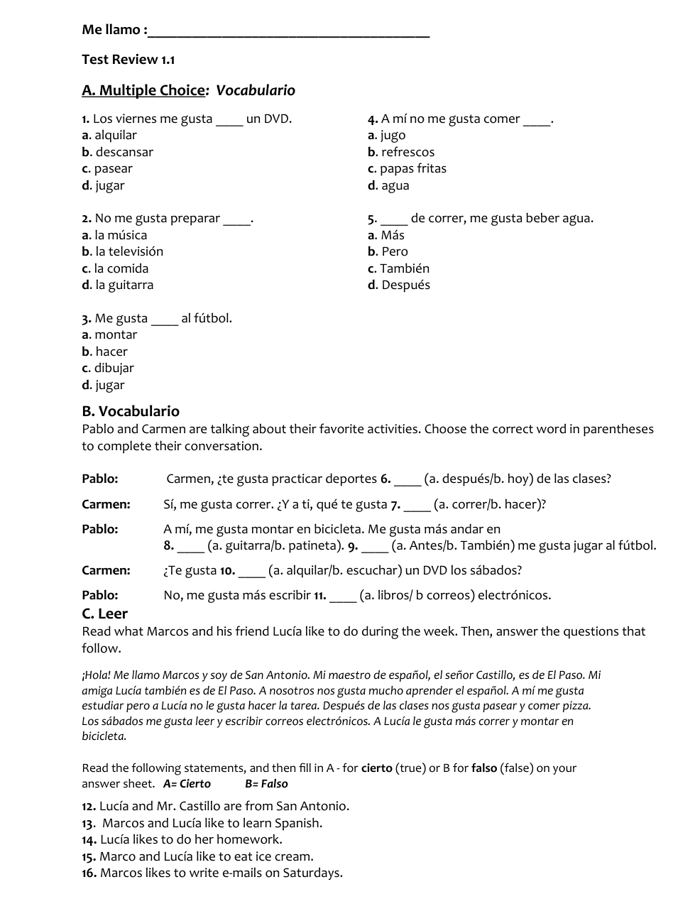 Part A: Multiple Choice: Vocabulario