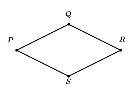 Para el rombo PQRS, los ángulos opuestos son congruentes.