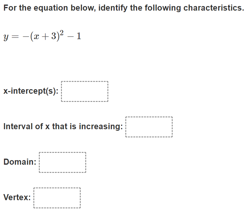For the equation: What are the x-intercept(s)?(input as a point (x,y) and separate by a comma if necessary, or if there are no real solutions, type: none)