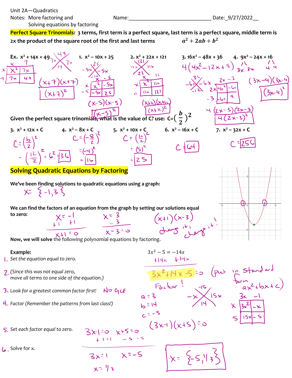 9/27/2022-HW Solving by factoring and Review Graphs