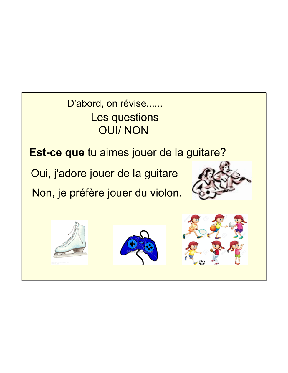 ___________ tu aimes le sport? Oui, j'adore faire du sport