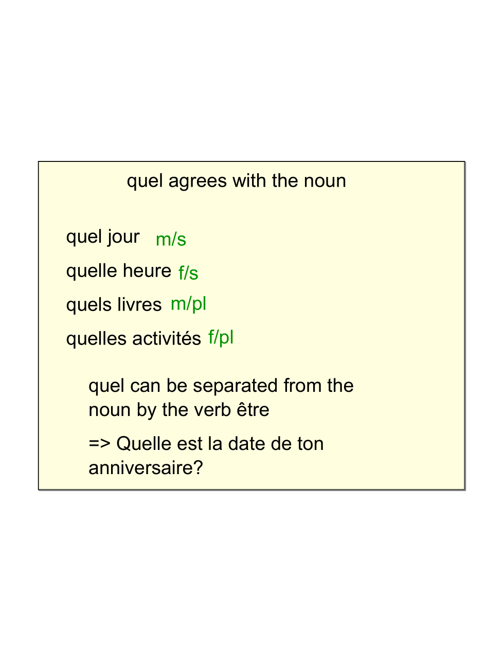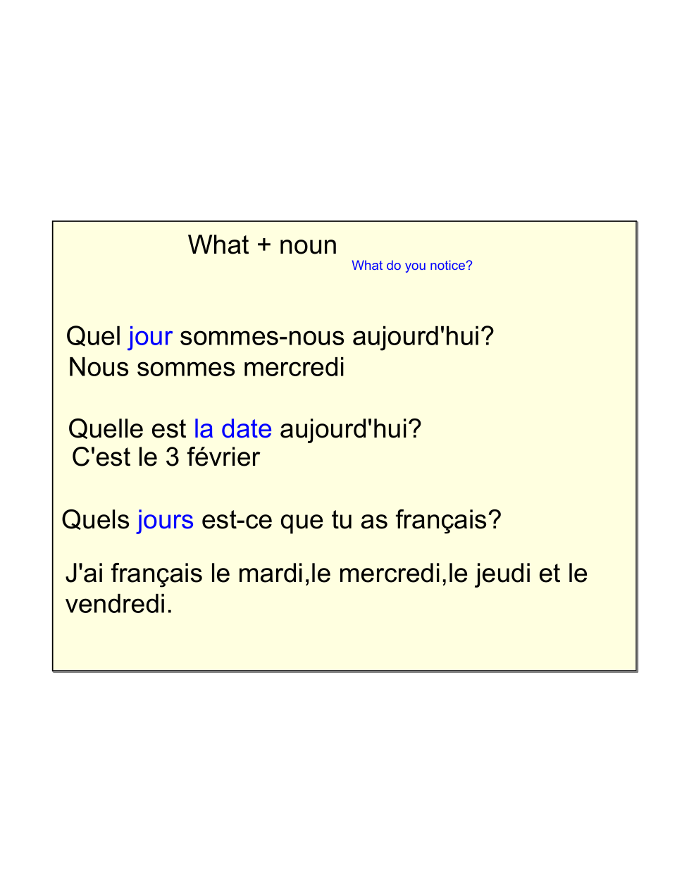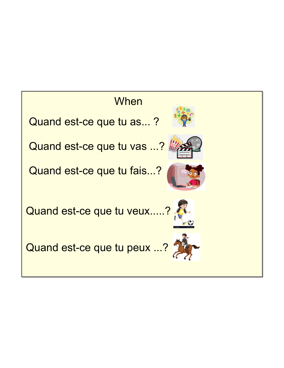 __________ est-ce que tu joues au foot? Je joue au foot le samedi