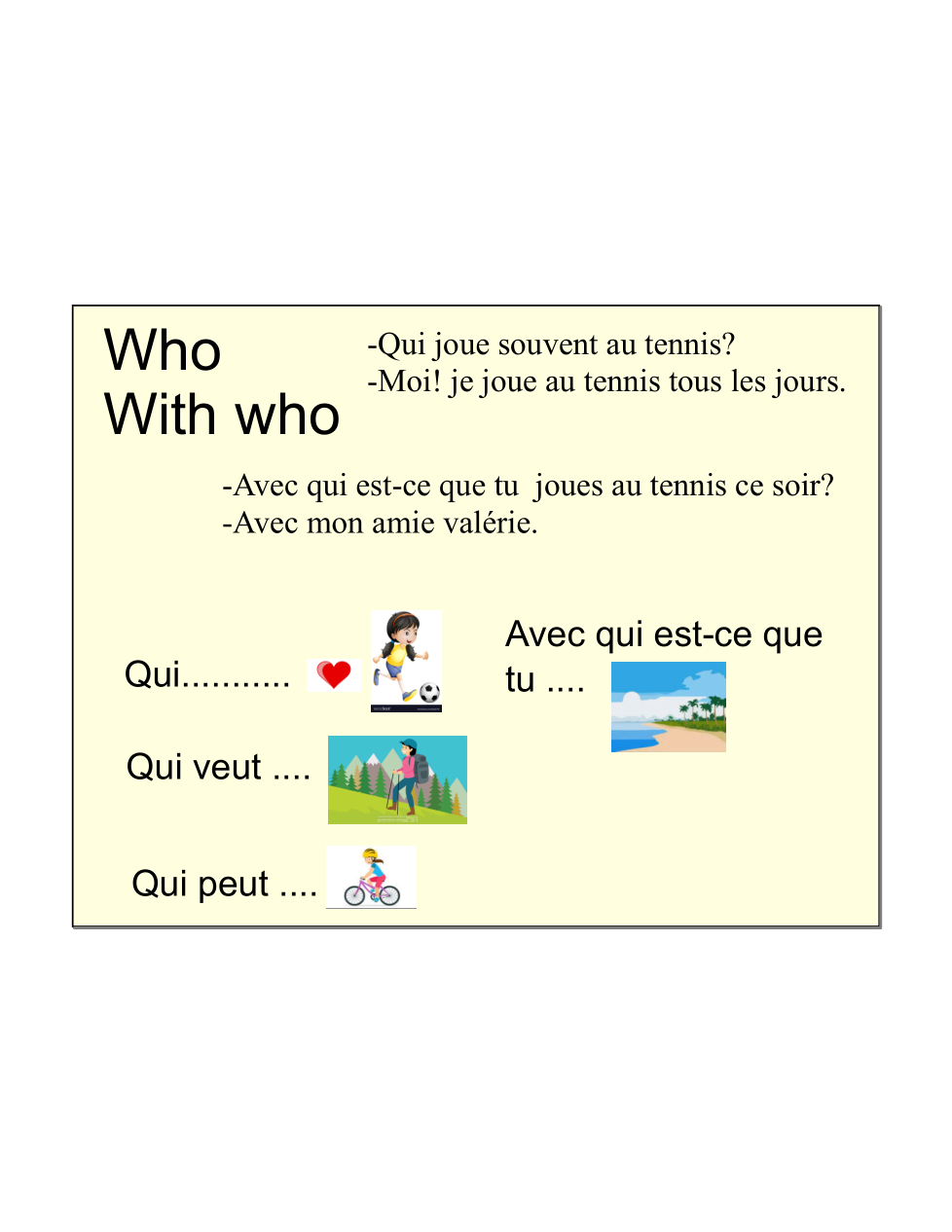 _________ est-ce que tu joues au foot? Je joue au foot avec mes amies