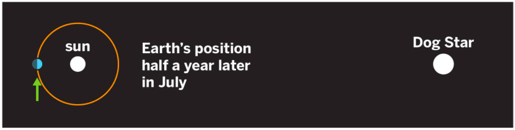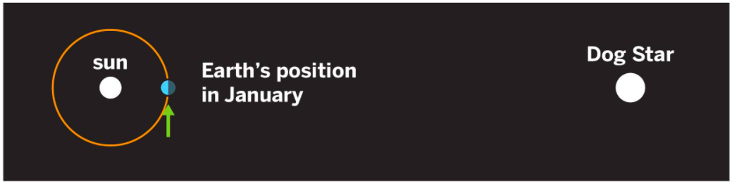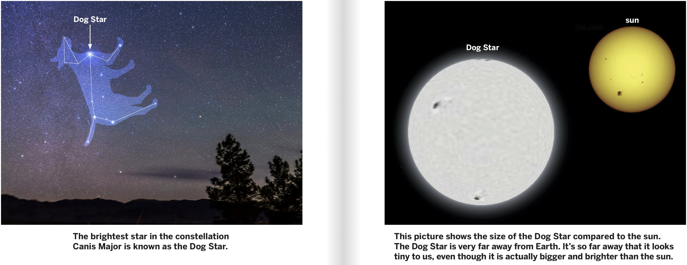 According to the text and diagrams, when is the Dog Star easiest to see in the sky?
