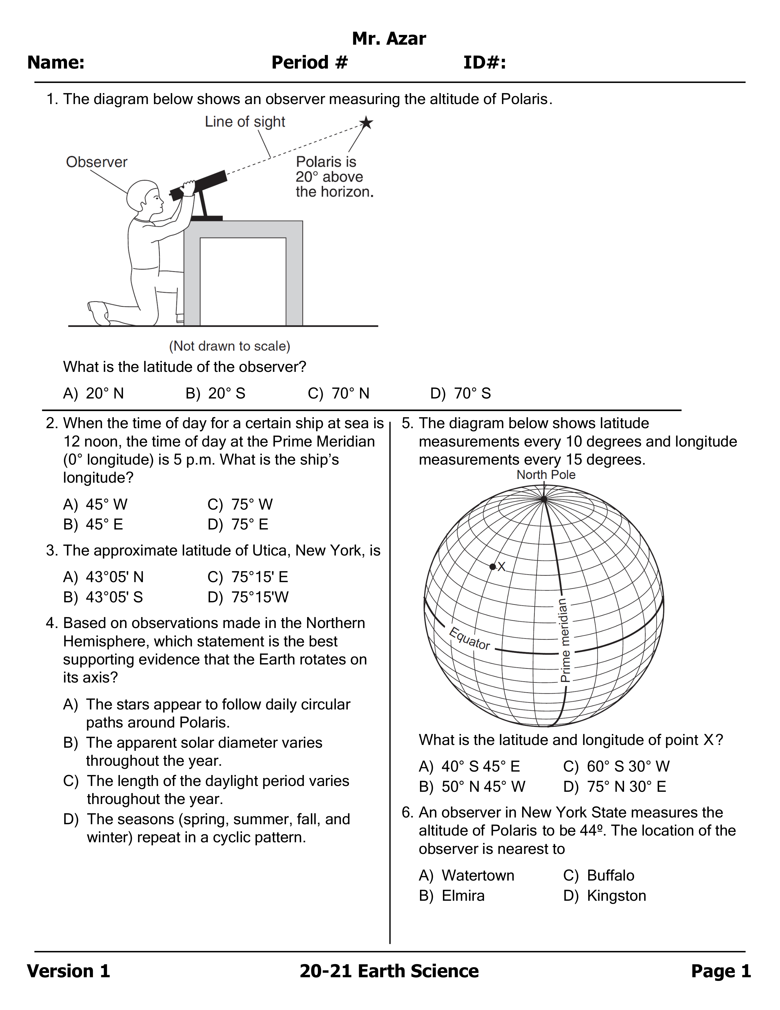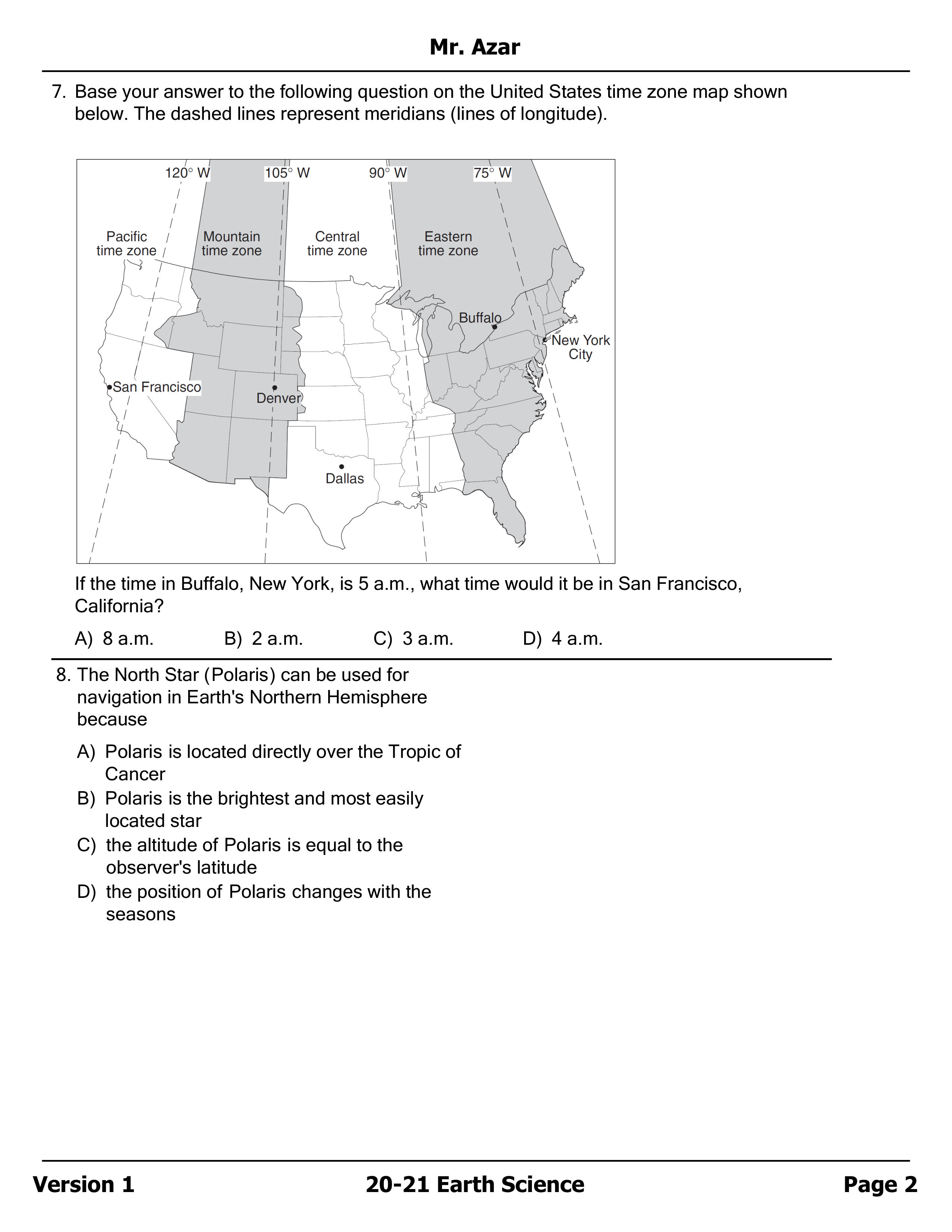 04 - Topical Practice on Lat/Long/Polaris/Time Zones