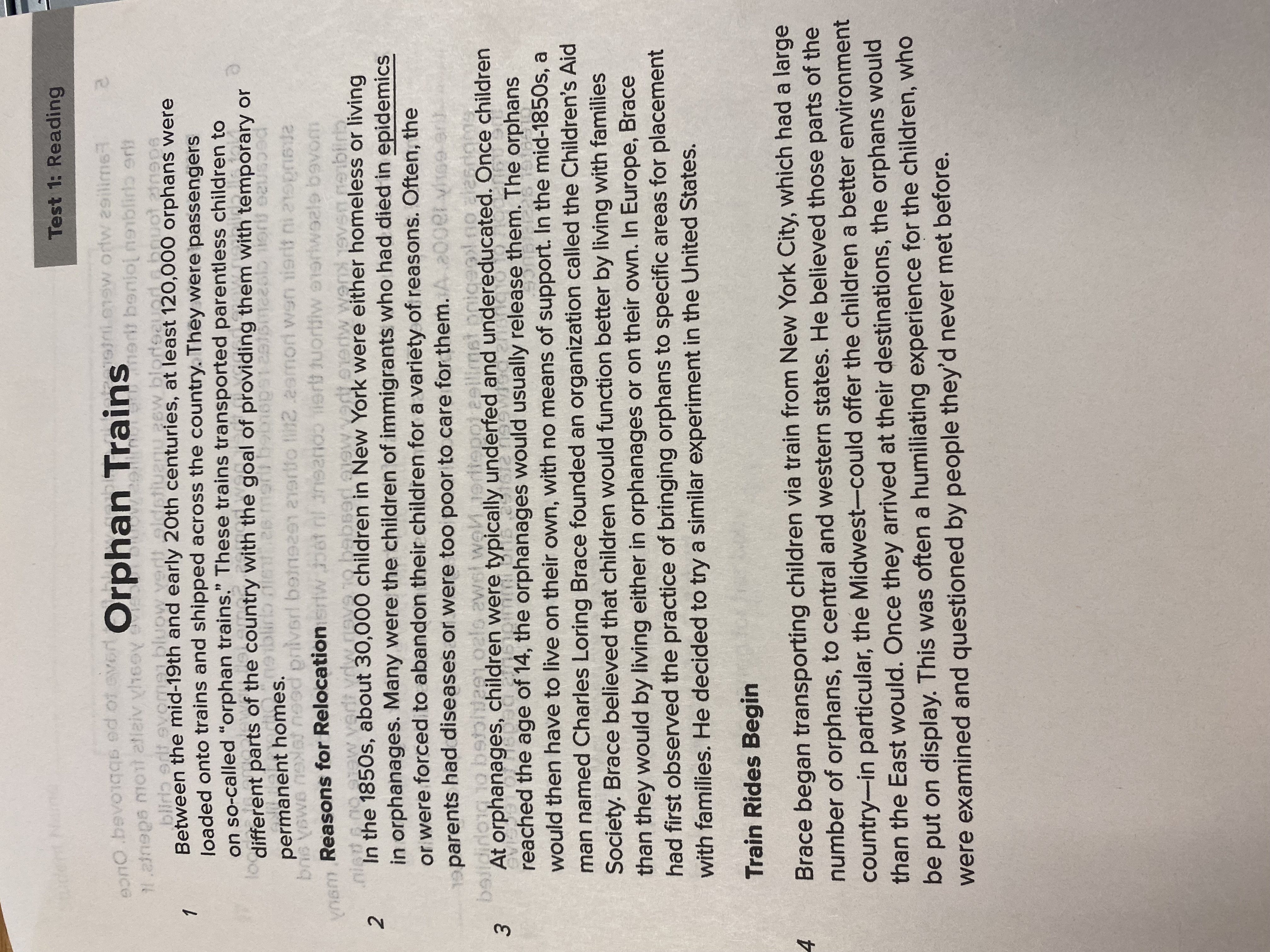 Which sentences from "Orphan Trains" are most closely related to this scene?