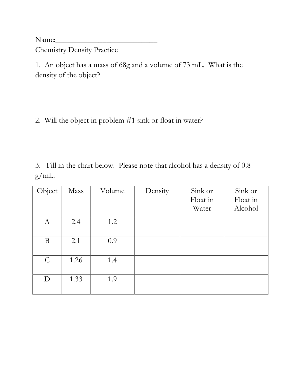 Density Extra Practice