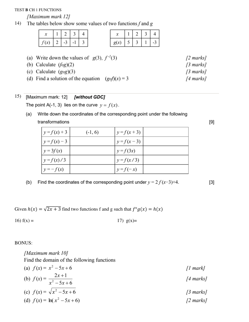 TEST B CH 1 FUNCTIONS