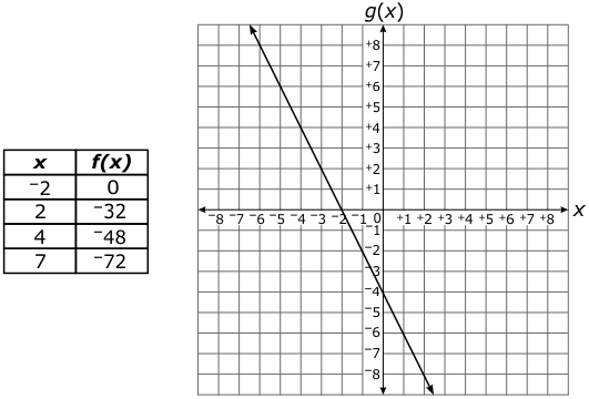 The linear function f(x) has a slope of –5 and a y-intercept of 1. The linear function g(x) passes through the points (–4, 2) and (2, 14). Which statement is true?