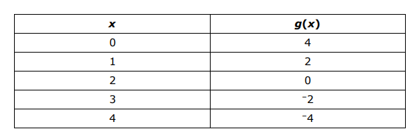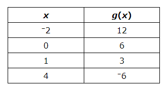 Jamie compared the function f(x) = –2x + 2 to the linear function, g(x), in the table below.