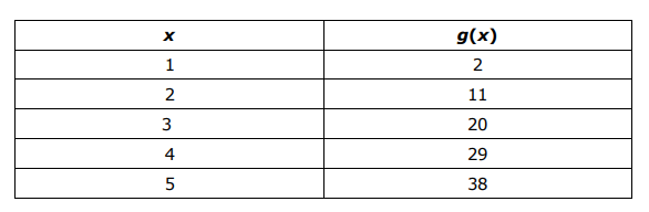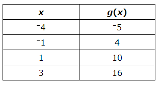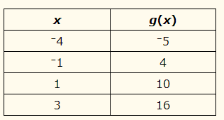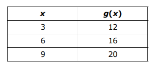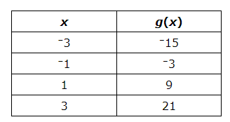 Jack compared the function f(x) = 3x + 9 to the linear function g(x), shown in the table below.