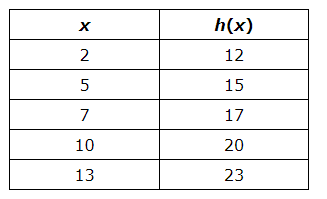 Jason compared the function f(x) = 7x – 5 to the function, h(x), in the table below.