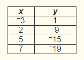 Layla compared the function f(x) = –4x – 5 to the linear function g(x) in the table below.