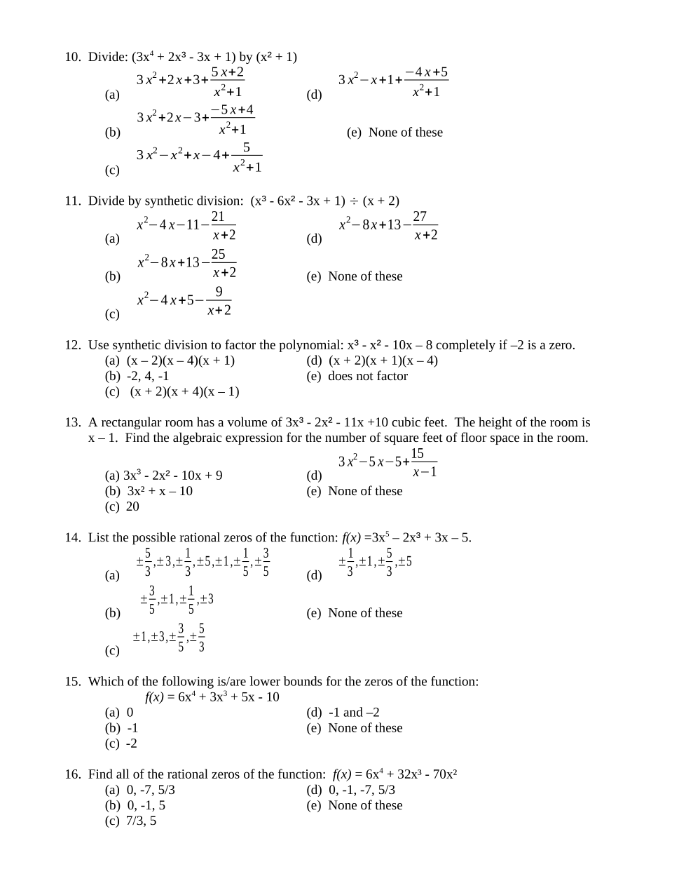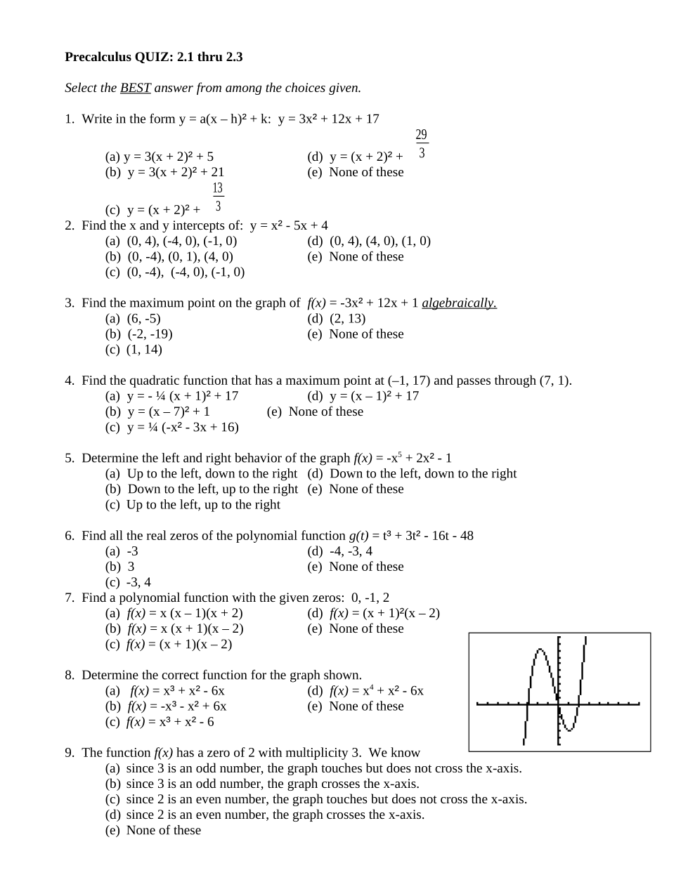 REG QUIZ 2.1,2.2 QUADRATIC AND POLYNOMIAL FUNCTIONS