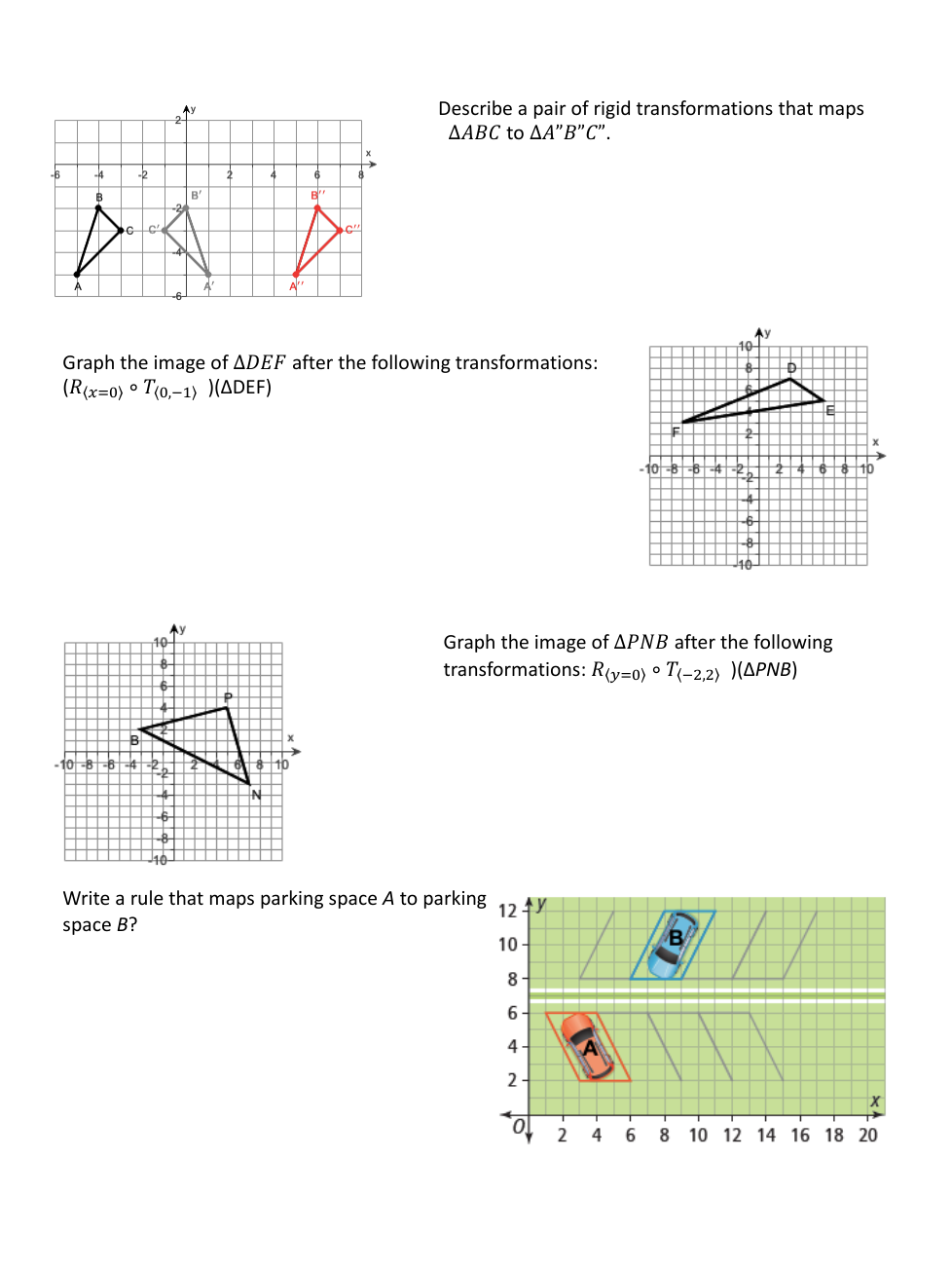 Fill in the blank to complete a third composition transformation that maps parking space A to parking space B: