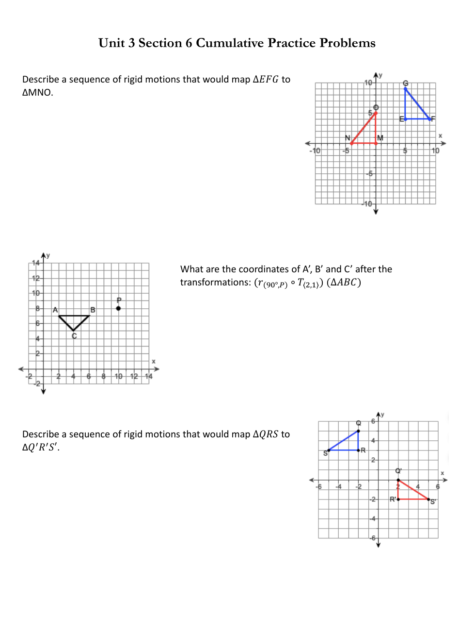 Describe a sequence of rigid motions that would map triangle EFG to triangle MNO.