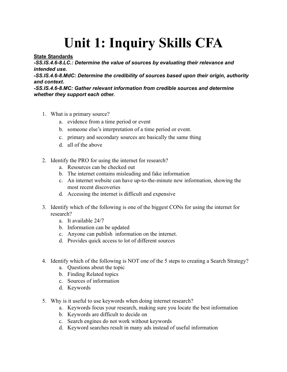 Unit 1: Inquiry Skills CFA 2022-23