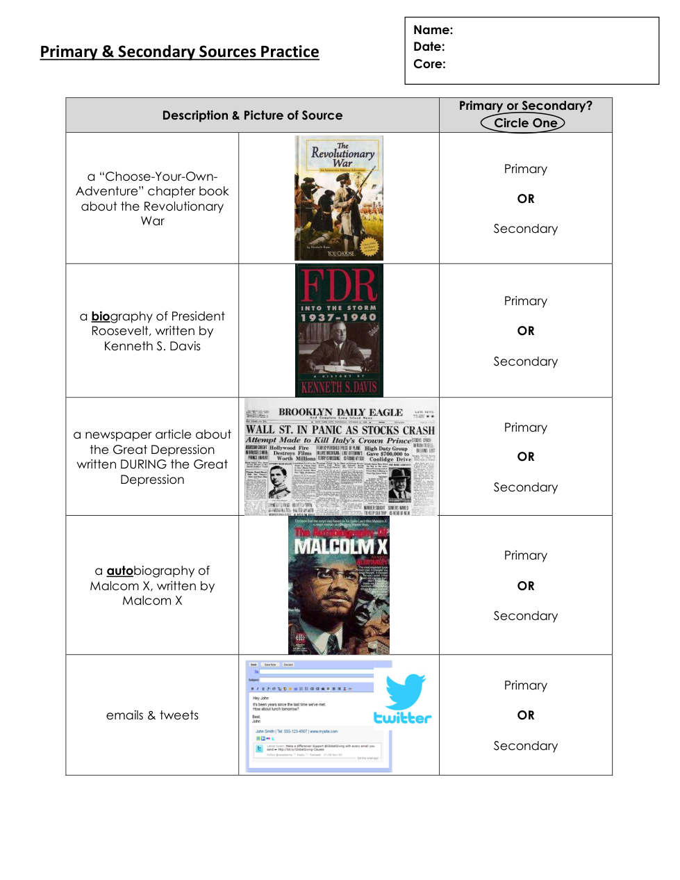 If something was written or made by someone who was living DURING the time period or event, it is a:
