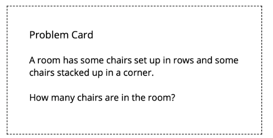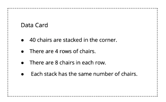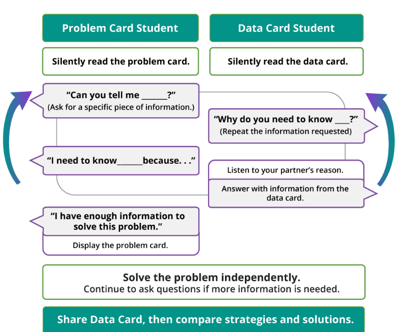 In groups of 2-3, one person will have a problem and the other person will have a data card like the ones shown in the