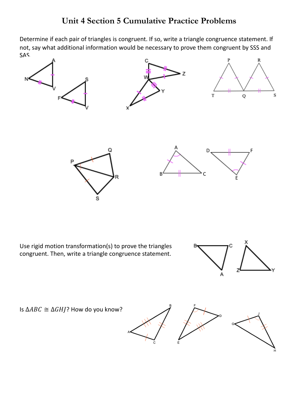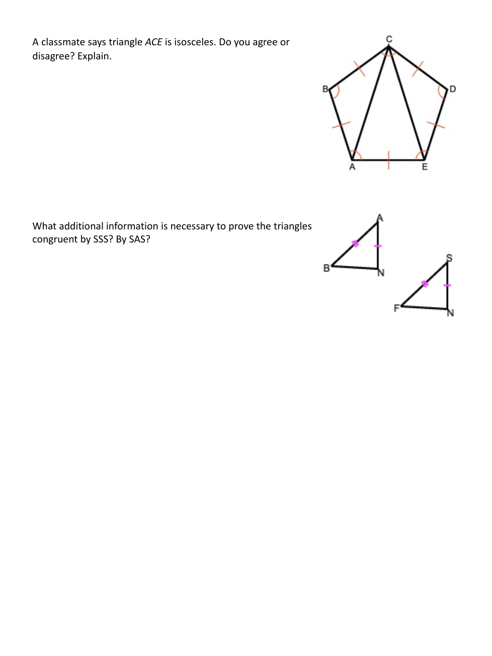 Fill in the blank: To prove that the triangles are congruent by SAS we would need to know that __________ __________ is congruent to __________ __________.