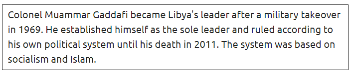 Which of these types of government BEST describes the Libyan government under Gaddafi's rule?
