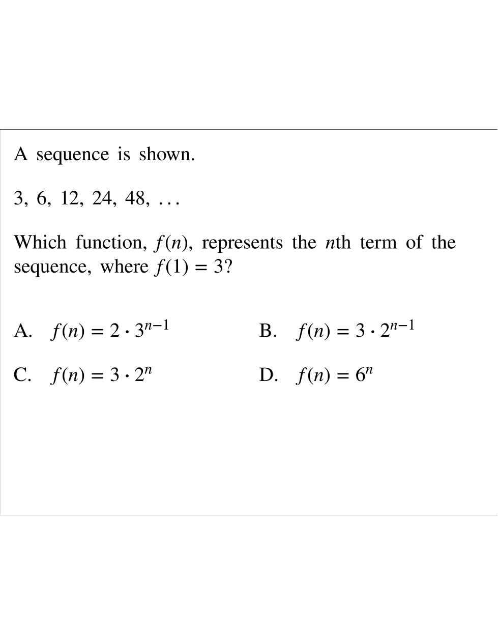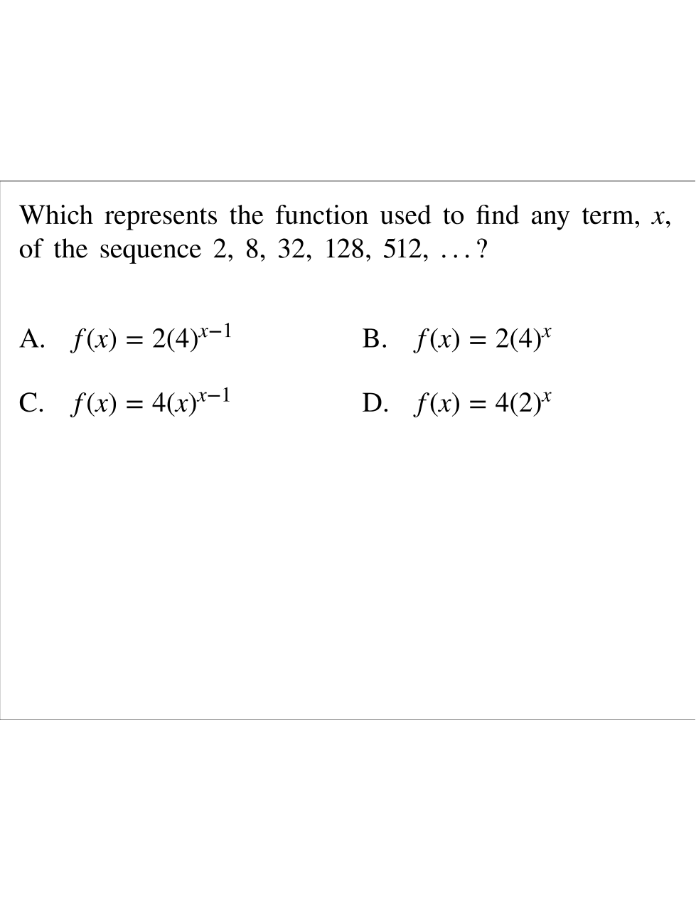 Which represents the function used to find any term,x, of the sequence2,6,18, ......?