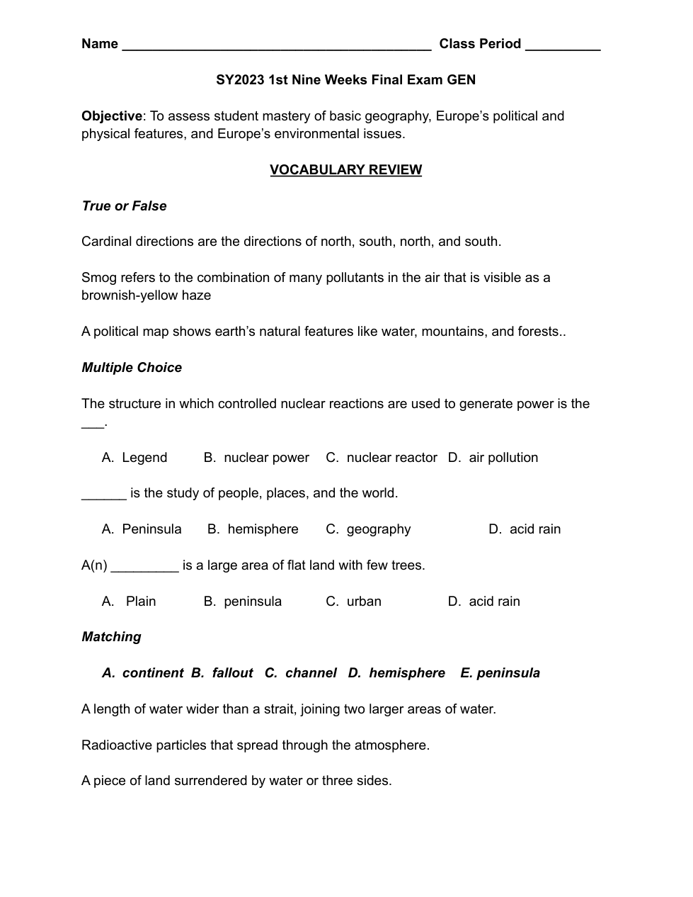 SY2023 1st Nine Weeks Final Exam GEN