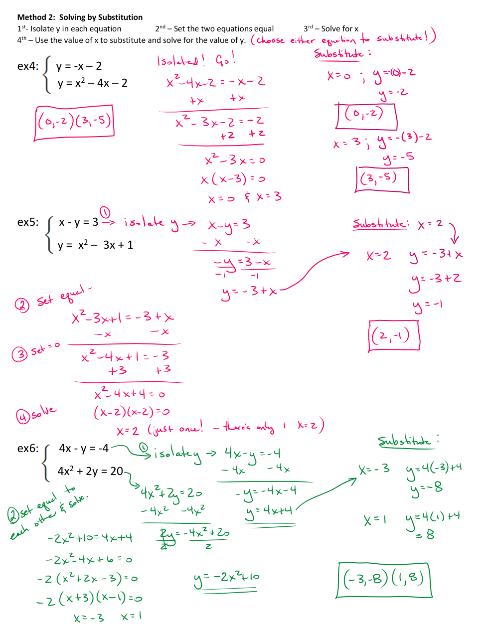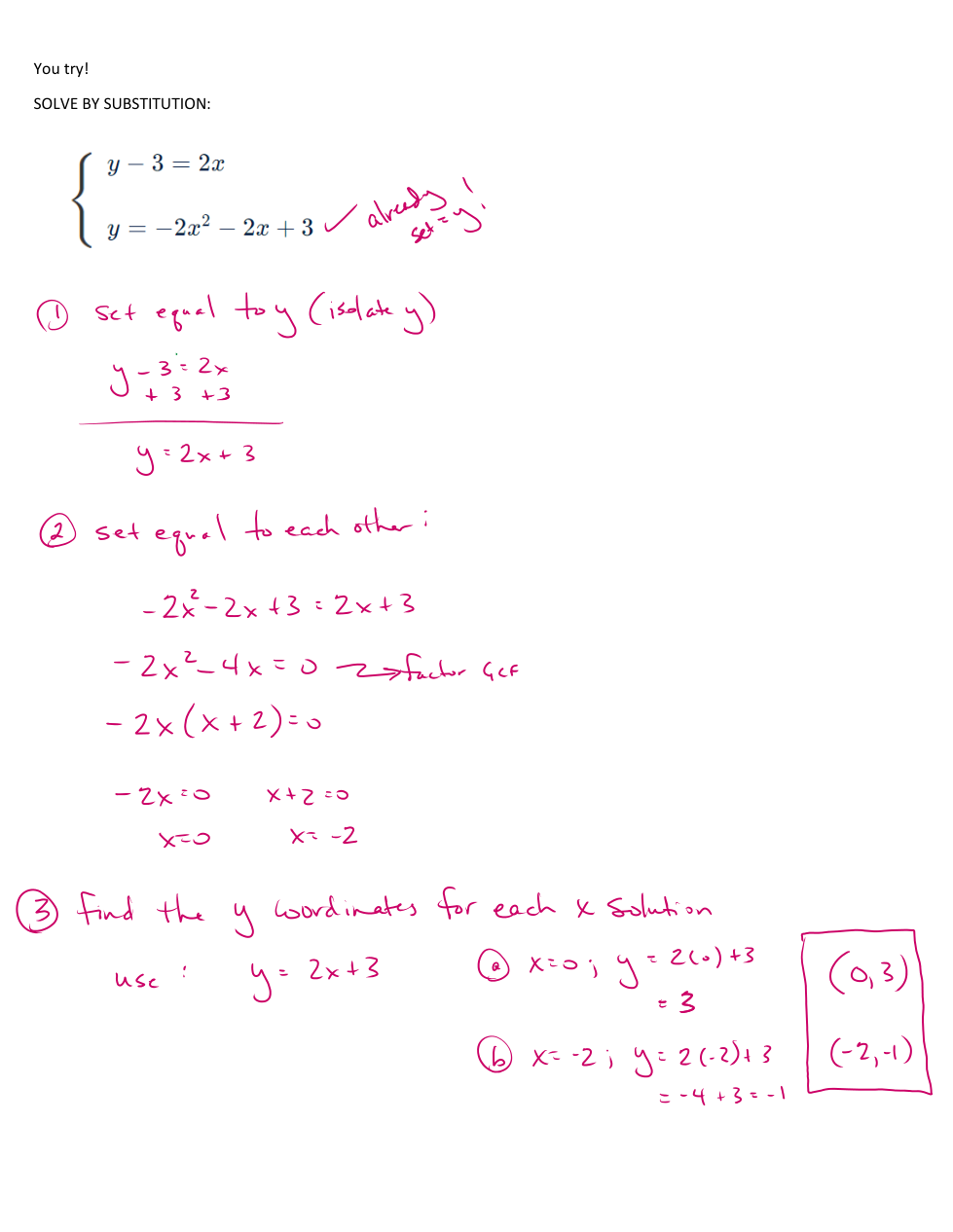 Solve the following system algebraically by substitution: Input your answer as point(s) or no solution. (x,y)(x,y) IF THERE IS MORE THAN ONE SOLUTION, DO NOT PUT A SPACE BETWEEN POINTS!!!