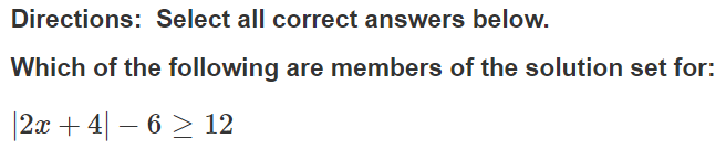 ( solve and graph, then determine which numbers below are INCLUDED in the shaded region of your graph!)